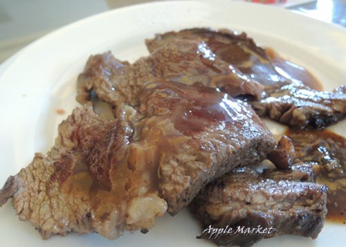 師父的料理台邊就是這樣一大塊的牛肉提供