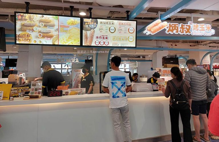 台中逢甲夜市排隊美食炳叔烤玉米,在重新裝潢新開幕的清水服務區也有設立櫃點,也是休息站內的人氣店,這天我們來逛時買氣超強,現場購買都要等二三十分以上。