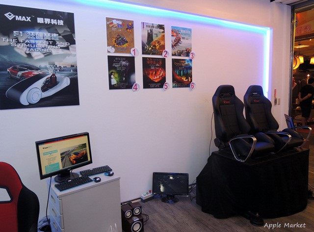 我光玩一個雲霄飛車就緊張得全身僵硬,身歷其境的感受就真的有如在遊樂園玩的一樣,好幾次都閉上眼睛逃避那種心臟掉到胃裡的感覺!膽小的人真的超適合來玩啦,這真的安全多了,不用擔心真的會飛出去XD。然後我一直在等待有沒有人會去玩詭屋,但是這天都是玩3號的人多,好可惜,我猜怕被嚇的人還是比較多XD。另外木頭人還有玩F1的賽車體驗,和在自家玩最不一樣的就是有實境眼鏡的配戴。喜歡挑戰競速快感的人可以來玩玩,立體感的賽車遊戲更有臨場感喔!