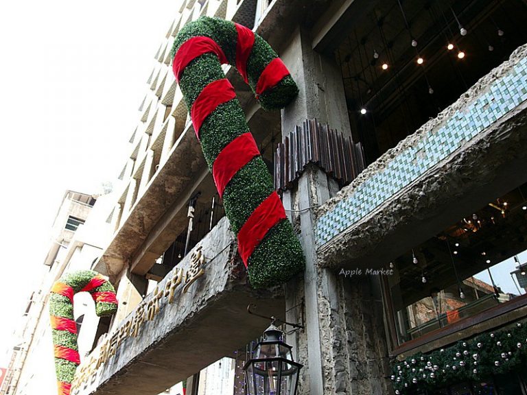 好大的拐杖糖爬上建築物!!第四信用合作社現在也充滿了濃濃聖誕風喔~