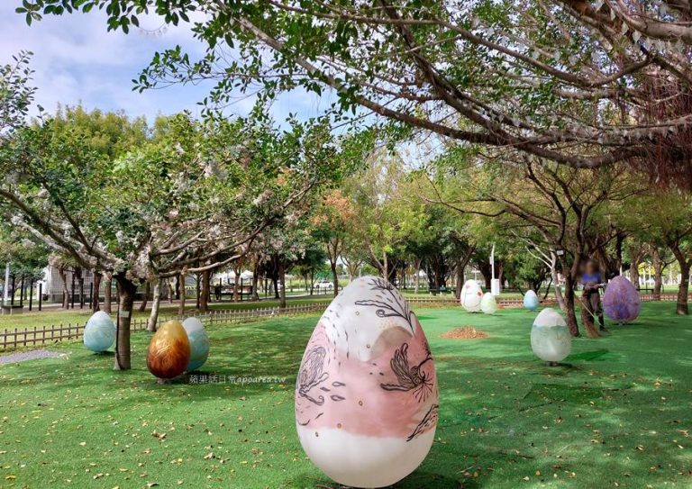 上次來臺中中央公園全新完工的飛行美樂地兒童遊戲場時,旁邊一塊圍起來的綠地,裡面有可愛的蛋型彩繪,襯著公園綠意相當吸睛顯眼。