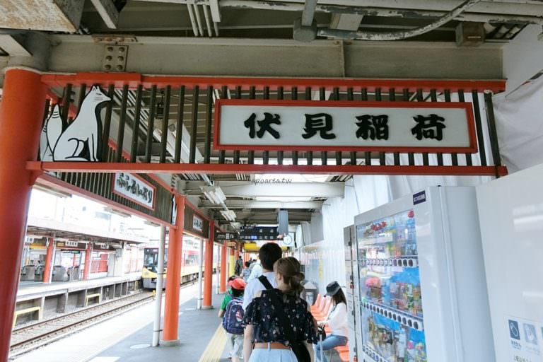 離開奈良後,我們來到京都的伏見稻荷大社,在車站就有顯眼的狐狸掛招。車站有寄物櫃,一時忘了可以寄物,所以我們背包行李一路背上千本鳥居山頂XD。