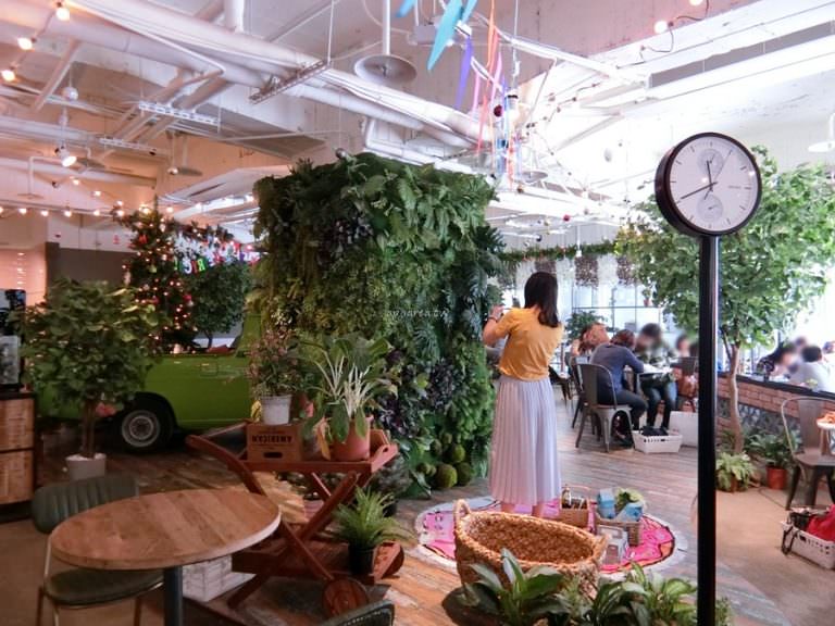 最受大家喜愛的大概也是因為這裡空間非常好拍,除了提供磁鐵英文字網美拍照牆區外,還不定時變換擺設,像現在就是聖誕節風格,熱鬧又討喜。雖然四人座位不大,但是團體大位置感覺就非常寬敞,很適合聚餐。甚至有貨卡坐位區,非常豪氣可愛!