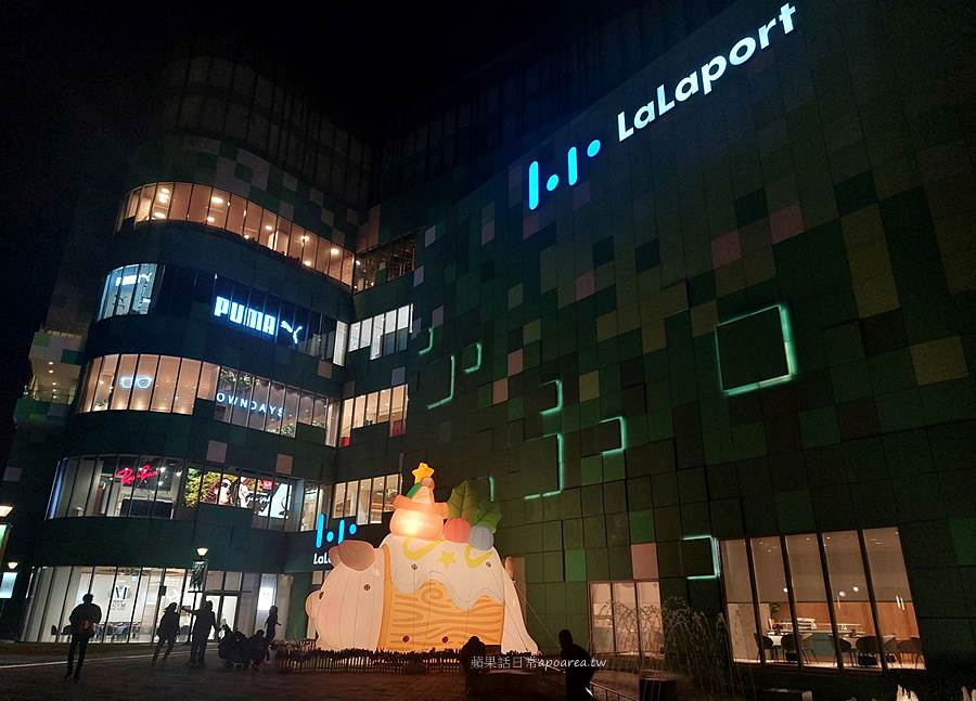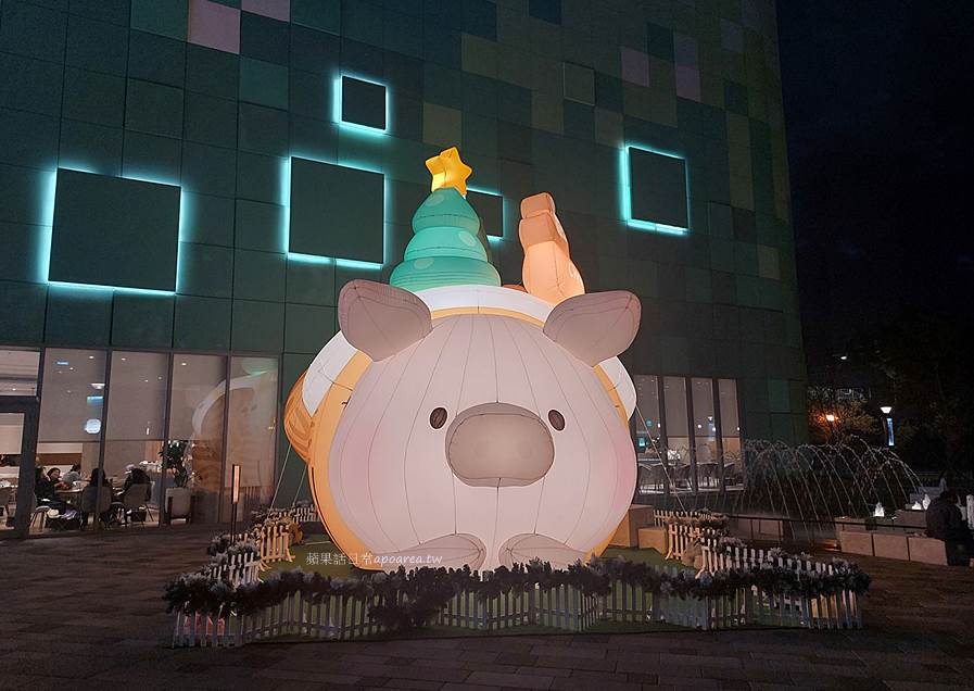 今年台中三井LaLaport期間限定的聖誕造景從12/13~2026/1/12止,就在LaLaport北館戶外噴水池廣場旁,是大型的星願捲心Lu氣偶,晚上還會點燈喔!