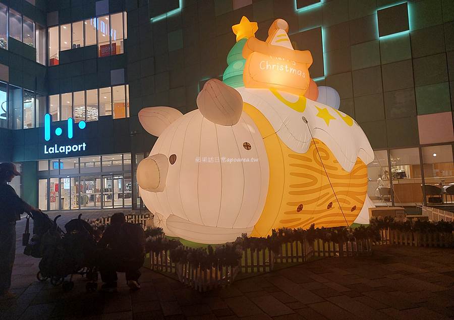 我從車站走過來時遠遠地看到LaLaport北館,忍不住心裡大喊怎麼會有豬???原來是今年台中三井LaLaport聖誕樹來了,是超級卡哇伊的罐頭豬LuLu,期間限定的聖誕佈置可愛滿點,大家記得來打卡拍照!