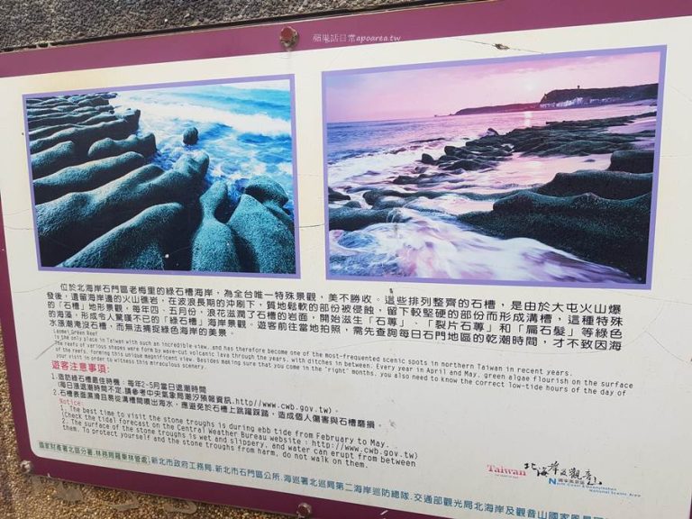 新北特色景點,來到北海岸必訪的老梅綠石槽,大概在每年3月-4月會成形,今年推估是清明節這段期間為最佳觀賞期。我們則是三月中來的,雖然當時陰雨天有點可惜,但也沒關係,因為這裡是一直想來的景點啊❤