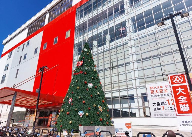 台中免費拍照景點,近3層樓高的繽紛聖誕樹有福利熊和大全熊,聖誕打卡熱點!臺中大全聯忠明店